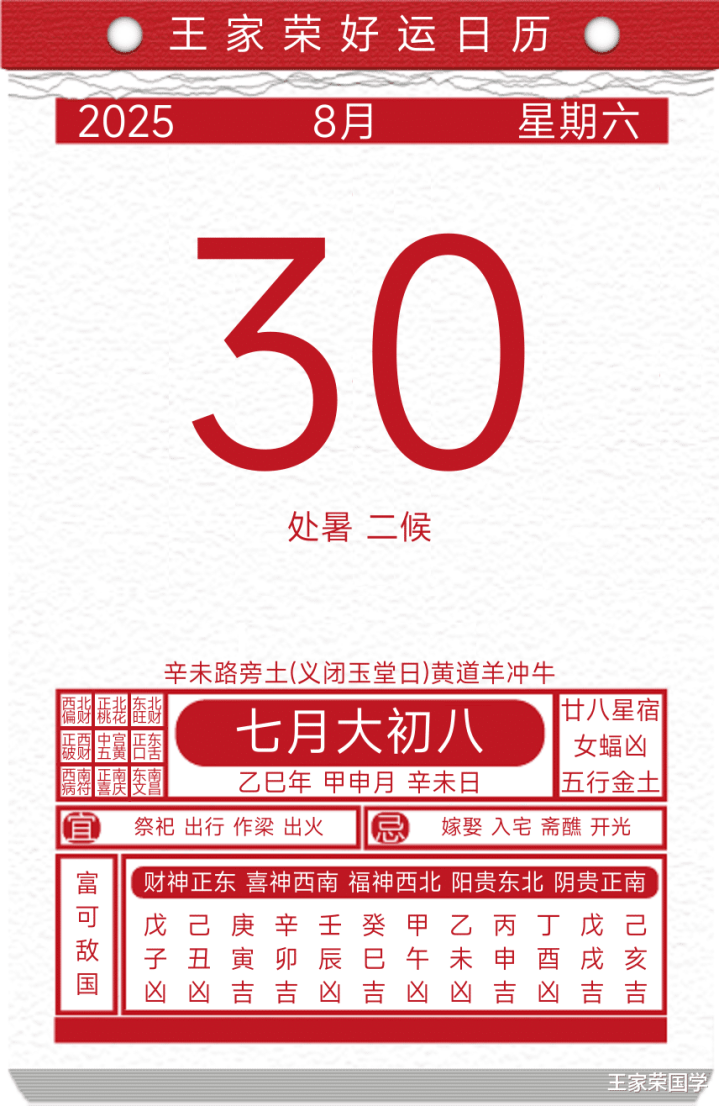 每日黄历吉凶宜忌2025年8月30日