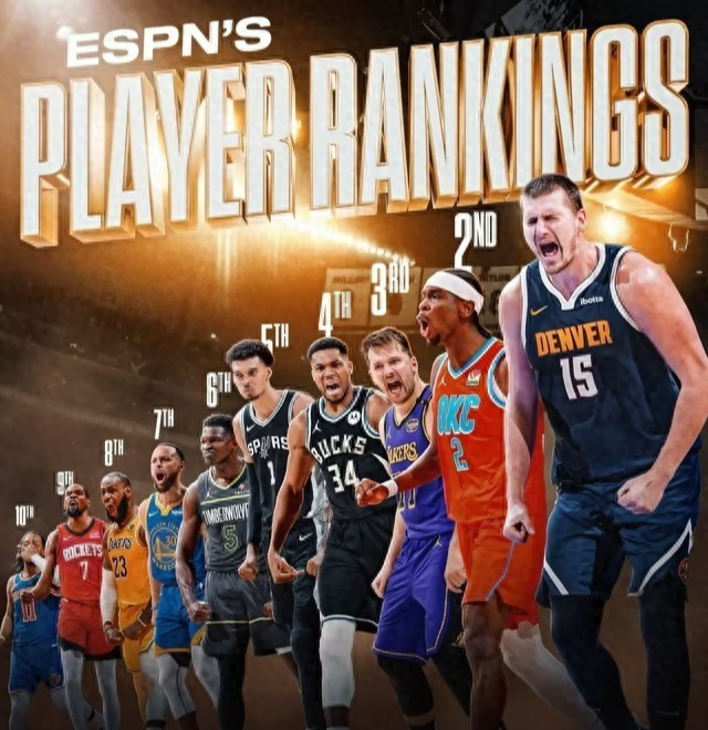 前十排名如下:约基奇,亚历山大,东契奇,字母,文班,华子,库里,詹姆斯,杜兰特,布伦森。